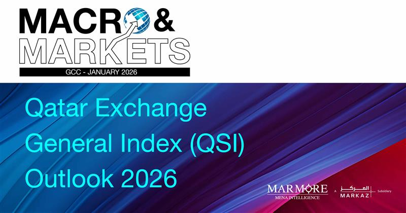 The S&P GCC index declined by 1.5% in 2025. All GCC equity market indices, except Saudi Arabia, registered broad-based gains in 2025 led by Oman (+28.2%), Kuwait (+21.0%) and Dubai (+17.2%). Saudi Arabia delivered its worst performance in nearly ten years at -12.8% in 2025. Qatar delivered modest gains of 1.8% in 2025. Qatar’s sector concentration is titled in favor of financials, especially banks, as QatarEnergy, which operates all of Qatar’s oil and gas activities, is fully owned by the State of Qatar and not listed on the exchange. While QNB and QIB delivered strong performance of 7.9% and 12.1% respectively, Commercial Bank and AlRayan Bank were down 3.4% and 10.9% in 2025. As we step into 2026, this report presents our outlook for Qatar Exchange General Index using a three-factor framework encompassing economic fundamentals, earnings growth potential and valuation attractiveness. A strong real GDP growth expectation of 6.1% in 2026, twin surpluses in the current account and fiscal position and massive LNG production expansion support a positive economic outlook for Qatar in 2026. Driven by strengthening domestic demand, corporate earnings are forecasted to grow by 8.3% in 2026 which is an improvement over the recent years. Recent market corrections have resulted in lower P/E ratios and high dividend yields, which makes the Qatar Equity market attractive in terms of valuation. Overall, our outlook for Qatar Exchange General Index for 2026 is positive.